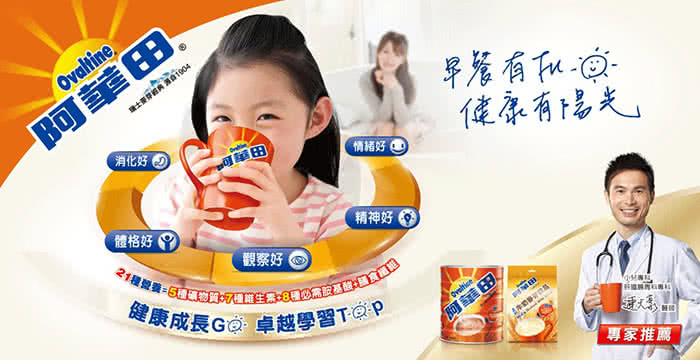 全新阿華田獨家研發的"Ovo-Vita"營養好,提供孩童成長時所需的營養,讓孩童卓越發展、健康成長。