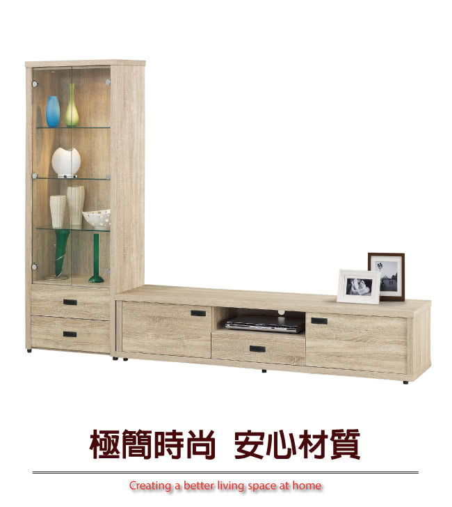 【文創集】比亞特 時尚8尺木紋L型電視櫃/展示櫃組合 採用時尚橡木紋色系+高質感外觀造型設計,採用防蛀木心板+防夾手緩衝五金+五金滑軌結構+優利坦三層抗磨全包式塗漆處理+內崁式把手等安心材質 ,防止受潮,增加支撐力,堅固不會塌陷,採用三抽屜+開放式層格+四門櫃等收納空間設計,高雅的紋路,營造隨性時尚感,清潔容易不麻煩。全由專人配送到家,專業安心服務,替你省下更多時間!